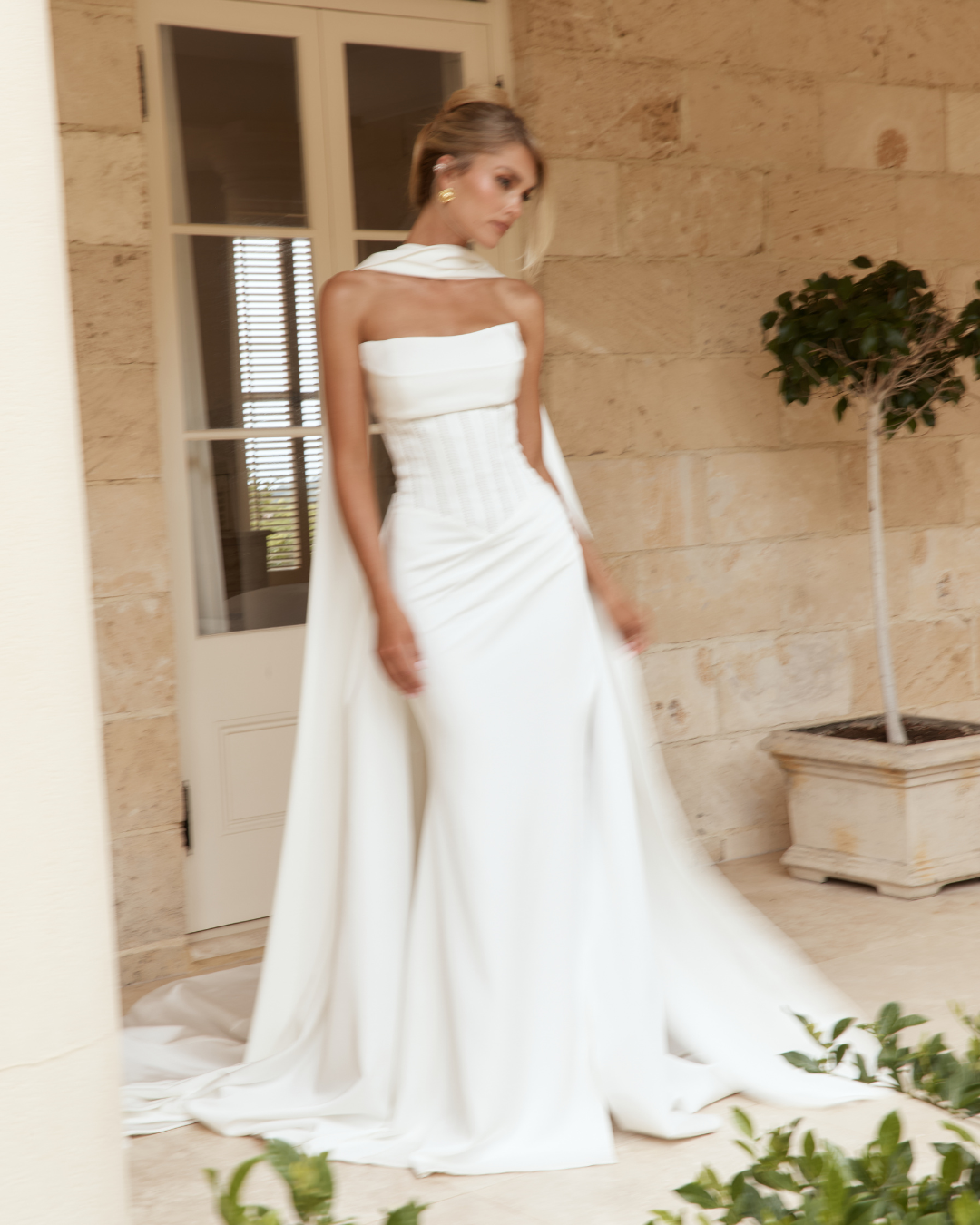 A softly structured piece crafted in Heritage Crepe with timeless appeal. The Heritage Scarf adds an air of old-world glamour and drapes beautifully over the shoulders or neckline.
