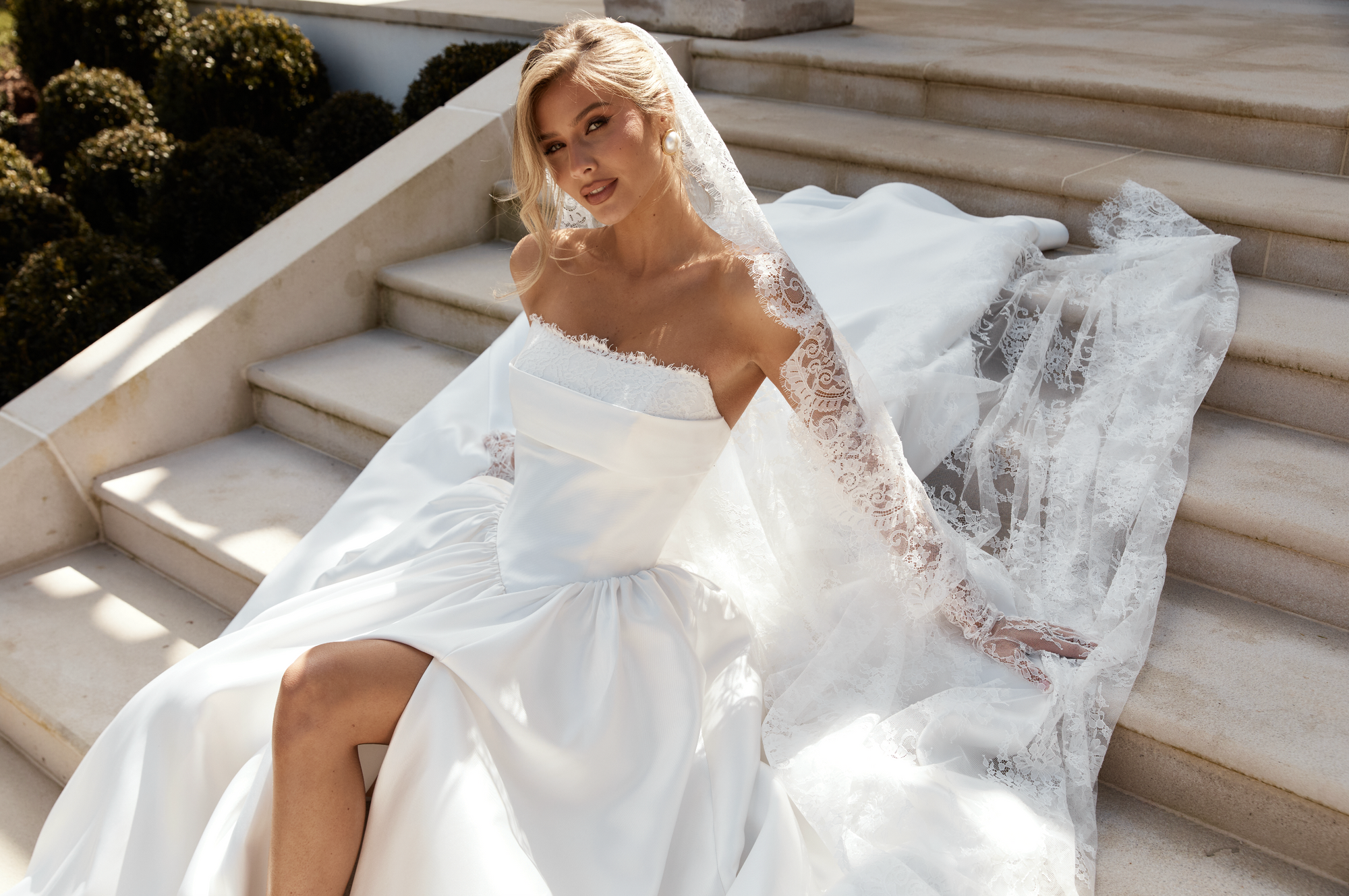 The perfect pairing. Complete your bridal look with our curated accessories collection, designed to elevate every gown. From statement jewellery and delicate veils to finishing touches, each piece is thoughtfully selected to complement our silhouettes and enhance your individual style.